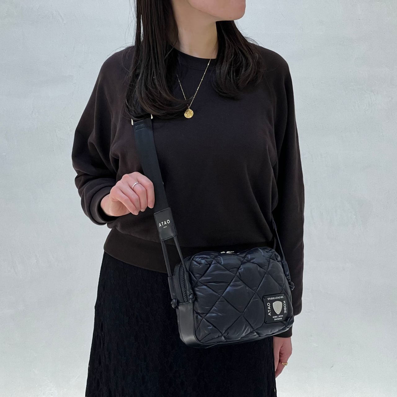 AA:「コラッツァは光沢感があるナイロンと各所にシープレザーを組み合わせているのでカジュアルな印象になりすぎないのもお気に入りポイント。レース素材のスカートやブーツ等の綺麗めアイテムとも相性がいいんです。」