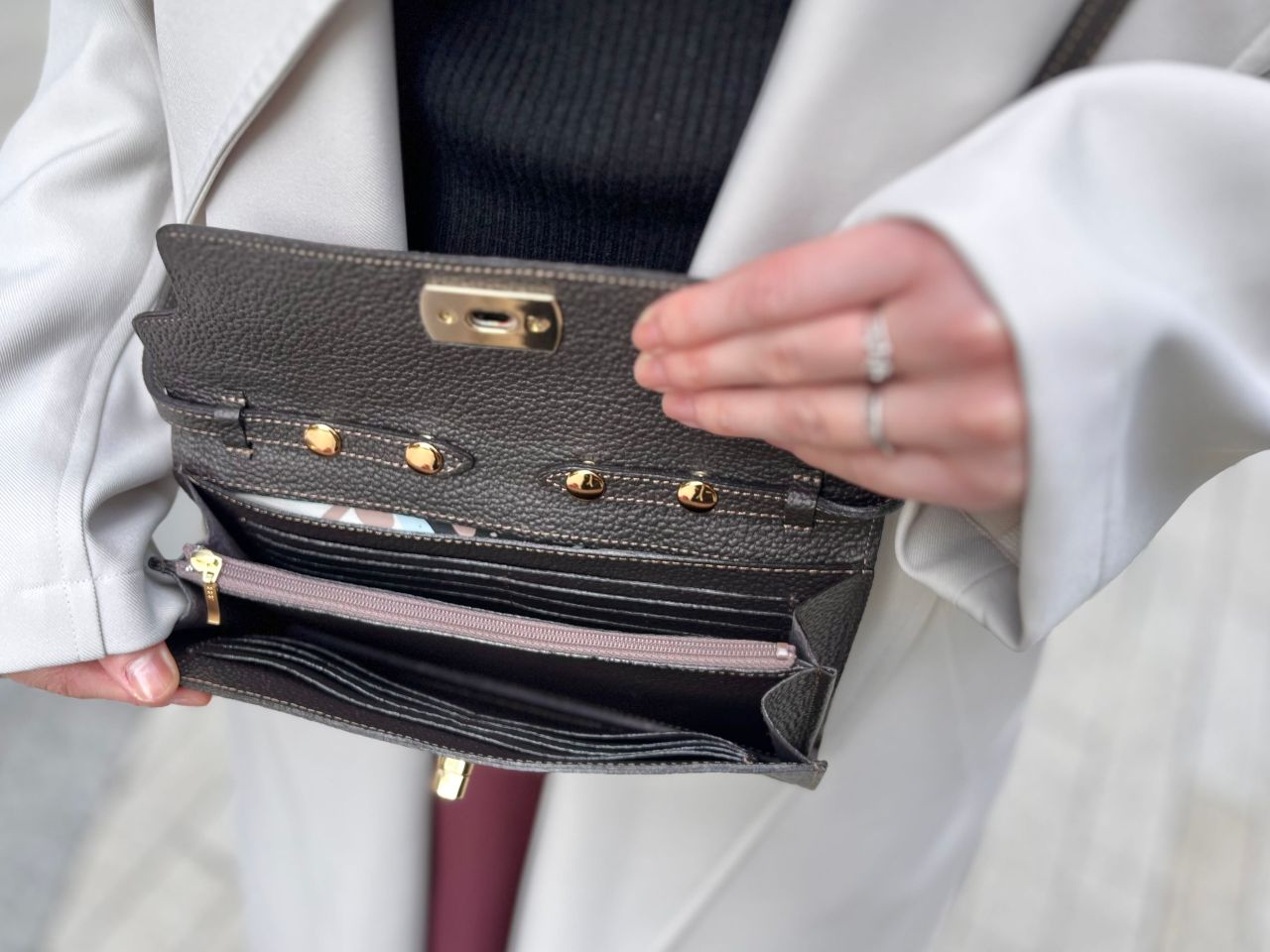 厚着になる冬は、荷物を減らしてなるべく身軽でいたい方もいらっしゃると思います。そんな方におすすめなのが、お財布ポシェット〈ティアラ〉!中はカードポケットなどが備わっており、スマホやお金類をスマートに収納できるアイテム。すぐに貴重品を取り出せるため、たくさんショッピングを楽しむ日にも便利&安心です!