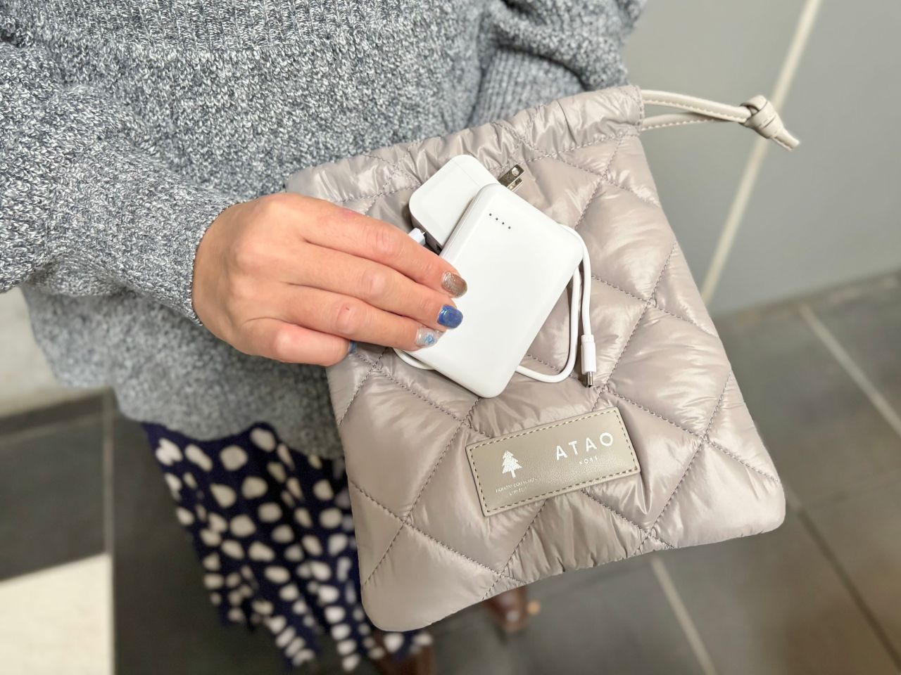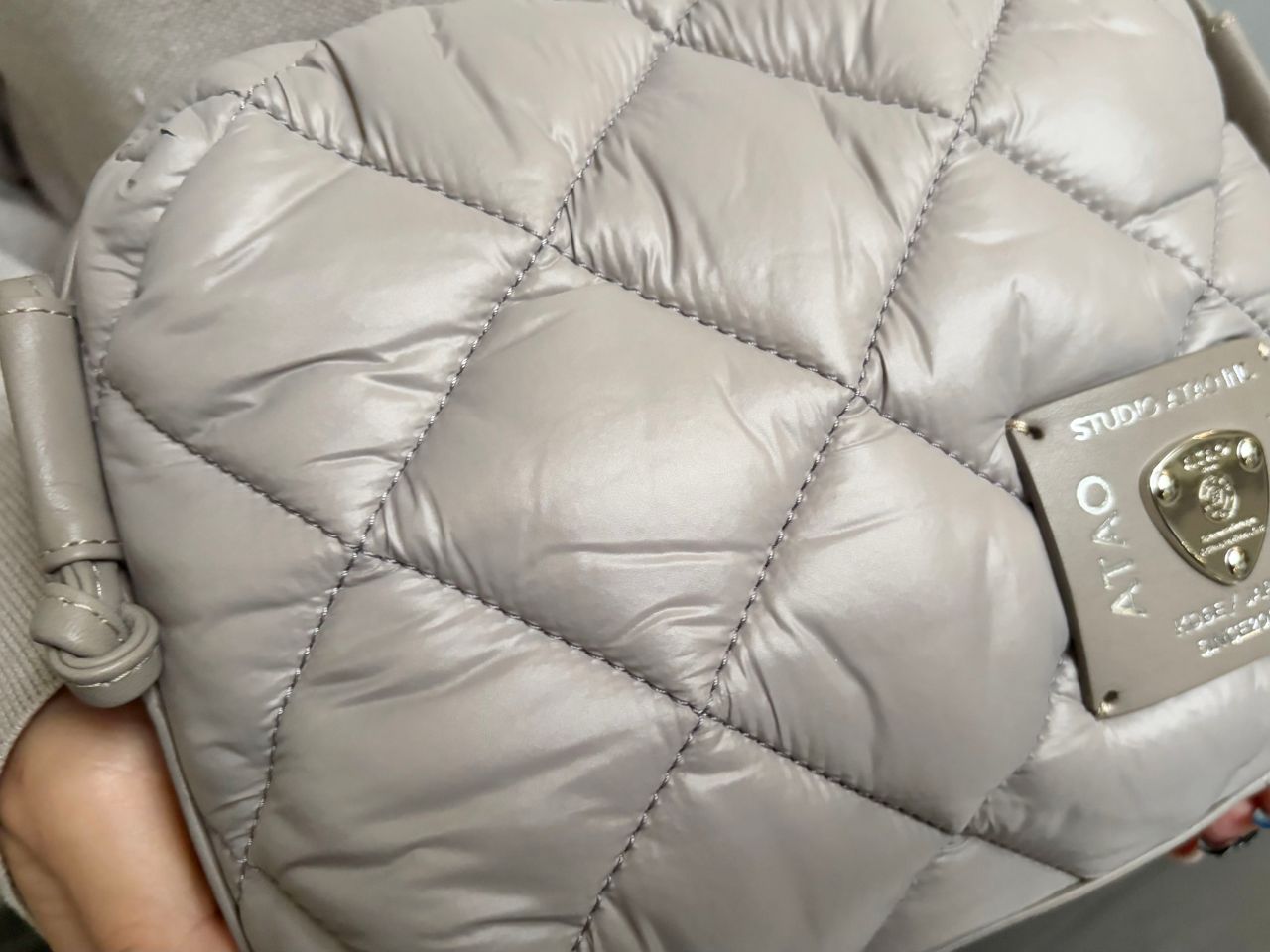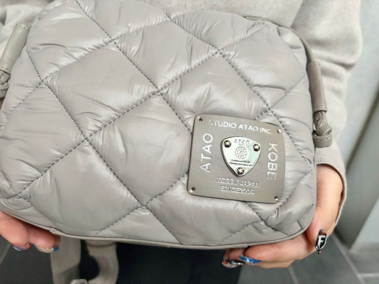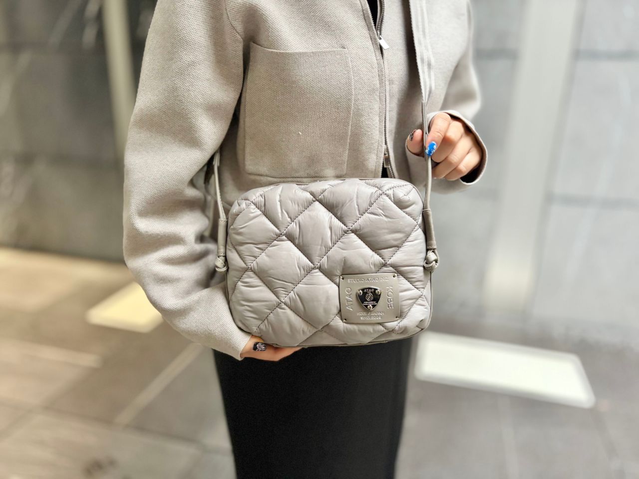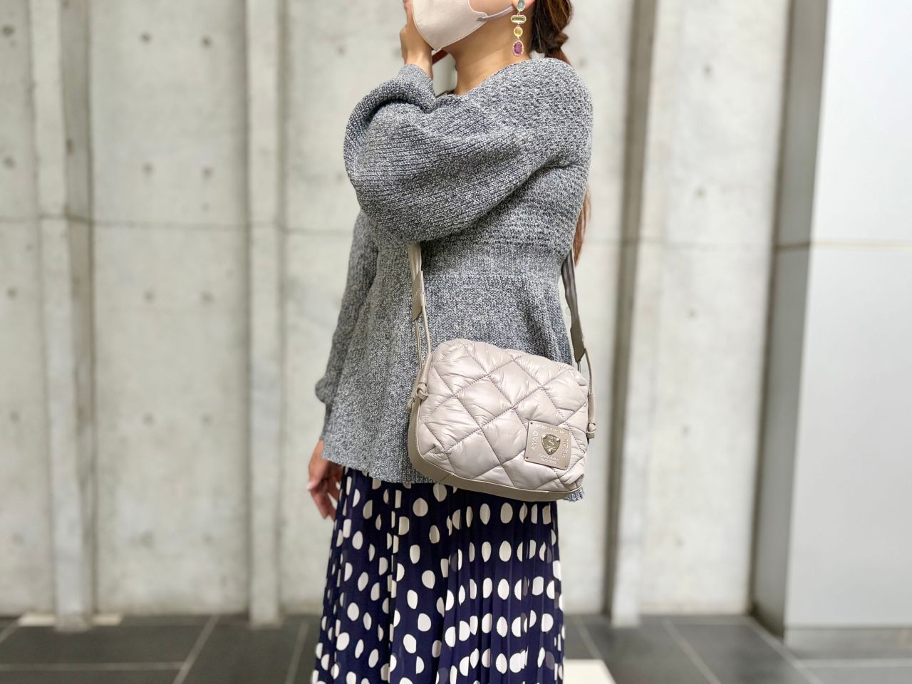 ブラックも素敵なのですが、この優しくスモーキーなカラー、ナイロンで一見カジュアルに見えるデザインをしっかり上品に格上げしてくれてます!