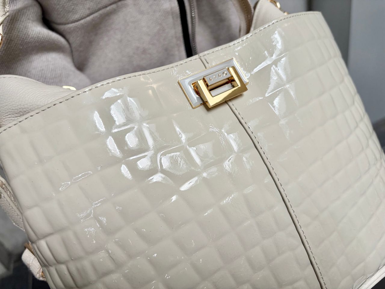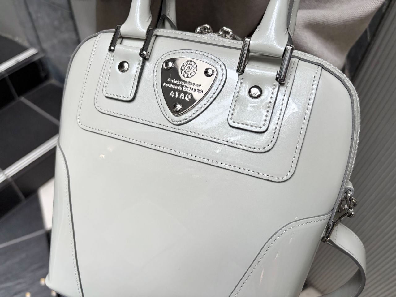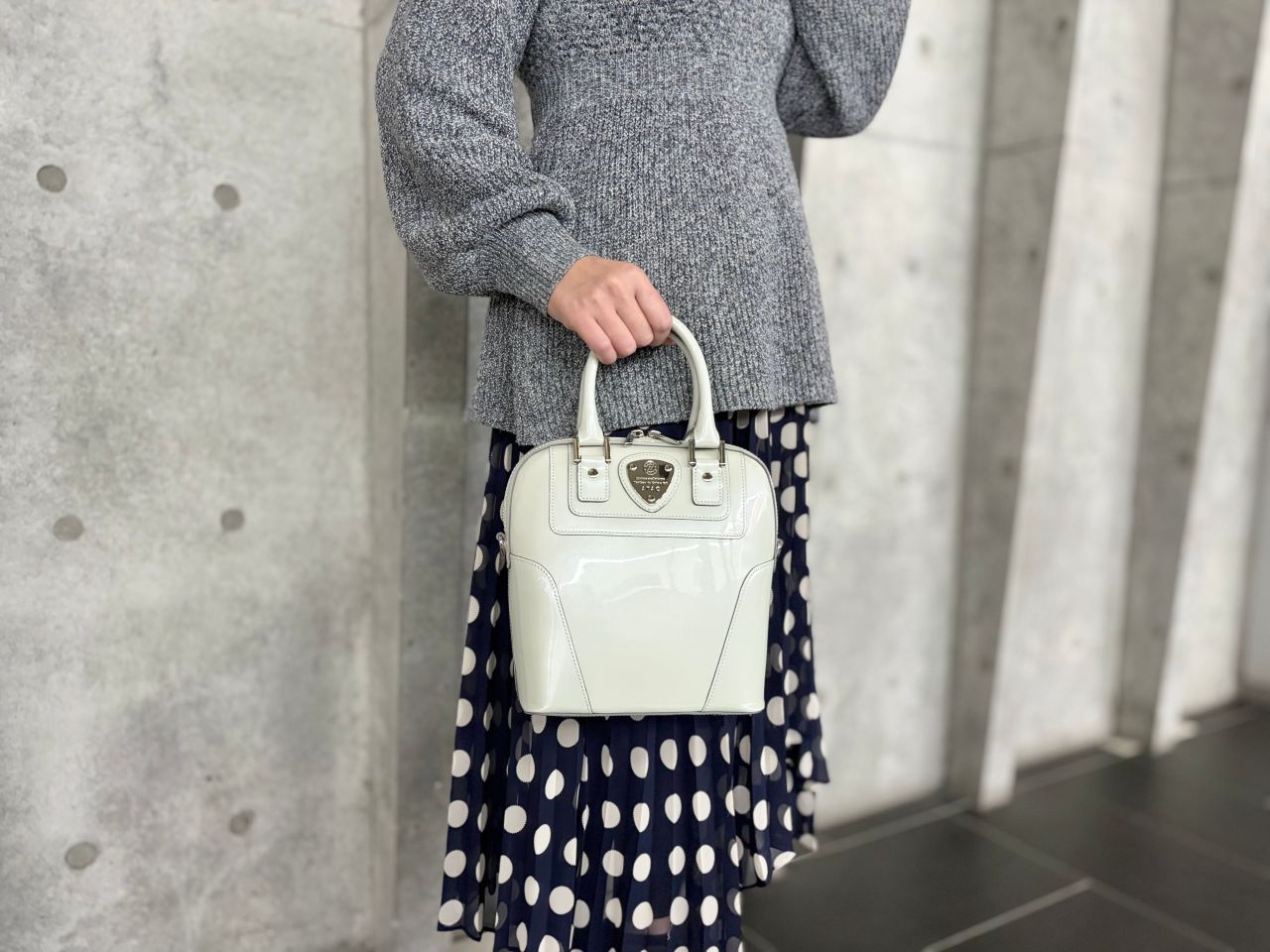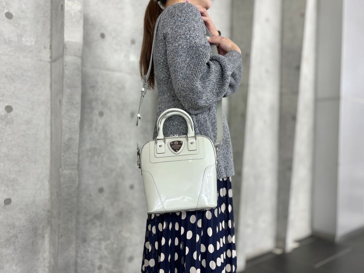 「月光に照らされた雪」をイメージしたアイスグレーのエナメルレザーバッグは、熟練の職人が1つ1つ丁寧にお作りしていて、手にした時のオーラがすごいです!