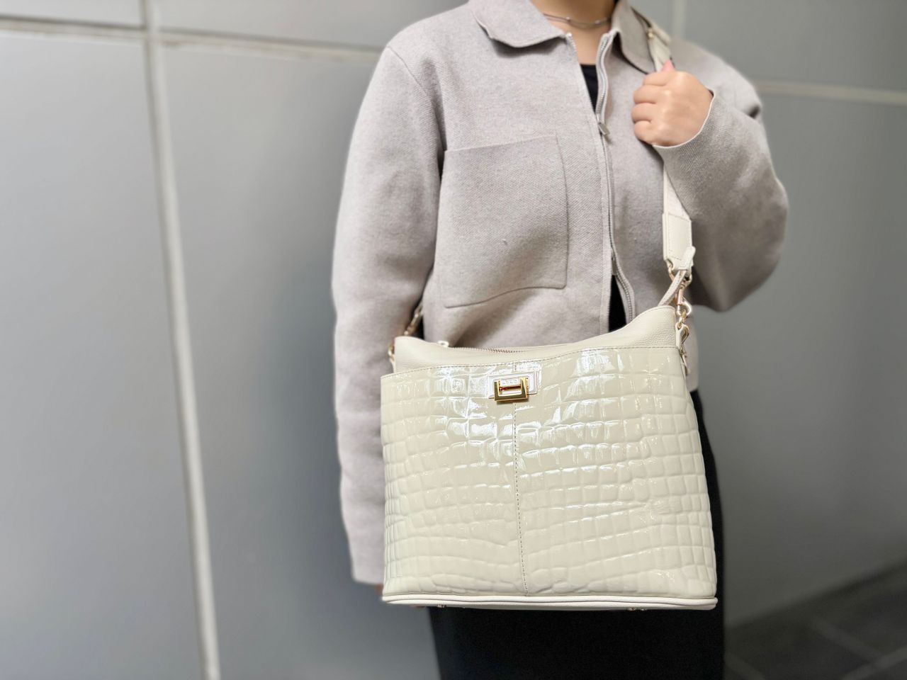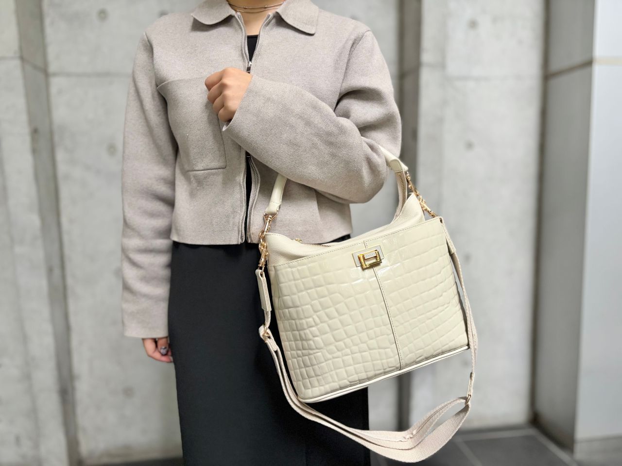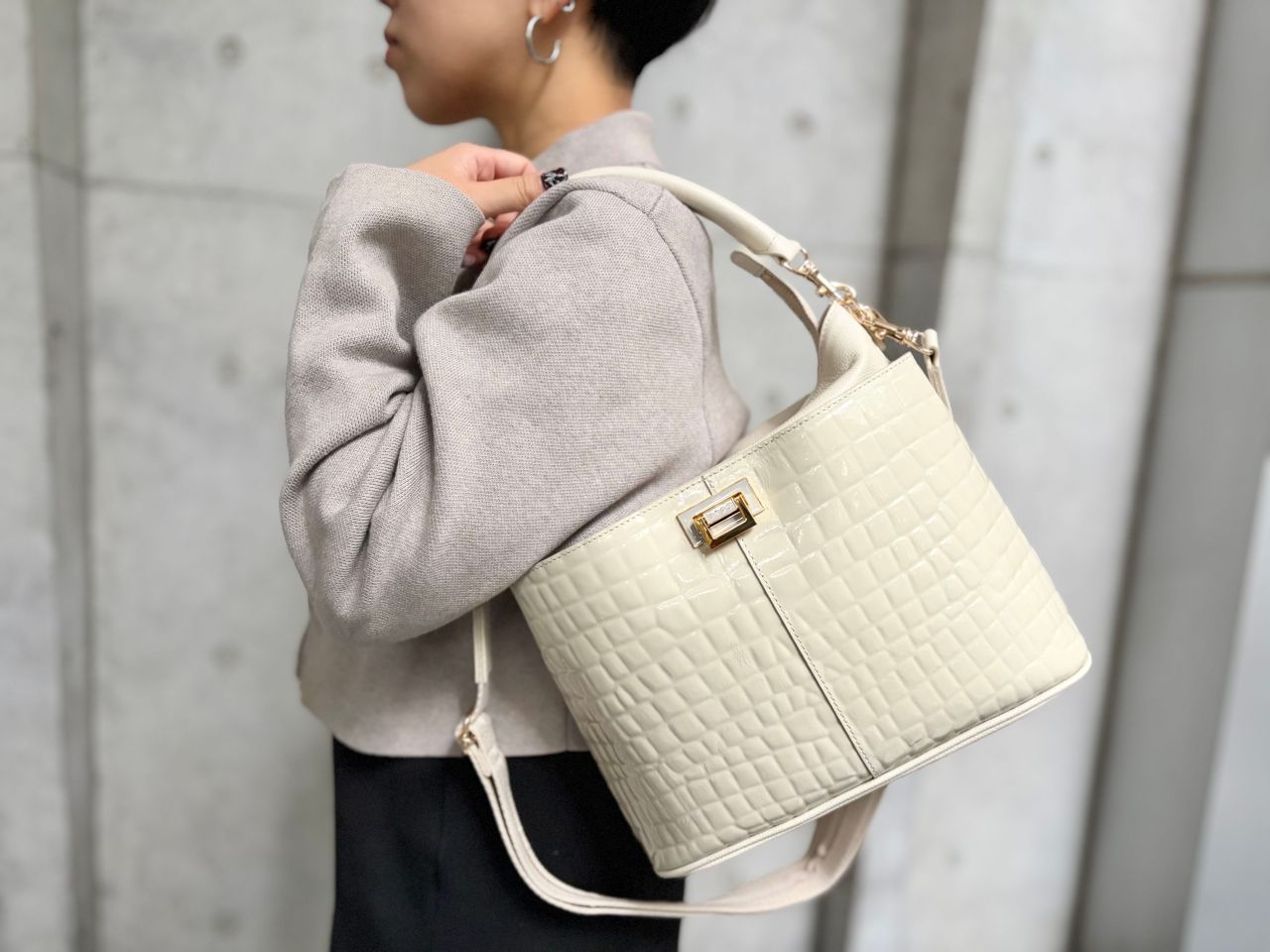 まろやかつやつやのクリーミーなエナメルレザーが、どんなコーディネートにも合わせやすいのにほどよく女性らしさを加えてくれます!