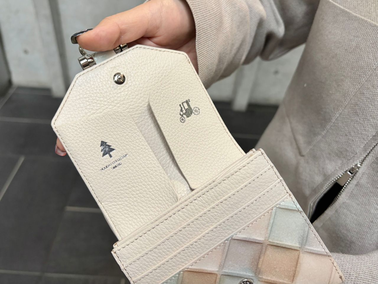 そして今回のロトロは、もともと開けて右側に箔押しされている馬車の刻印に加え、左側にホリデーコレクションのもみの木の刻印が施されており2つの刻印が並んでいます!