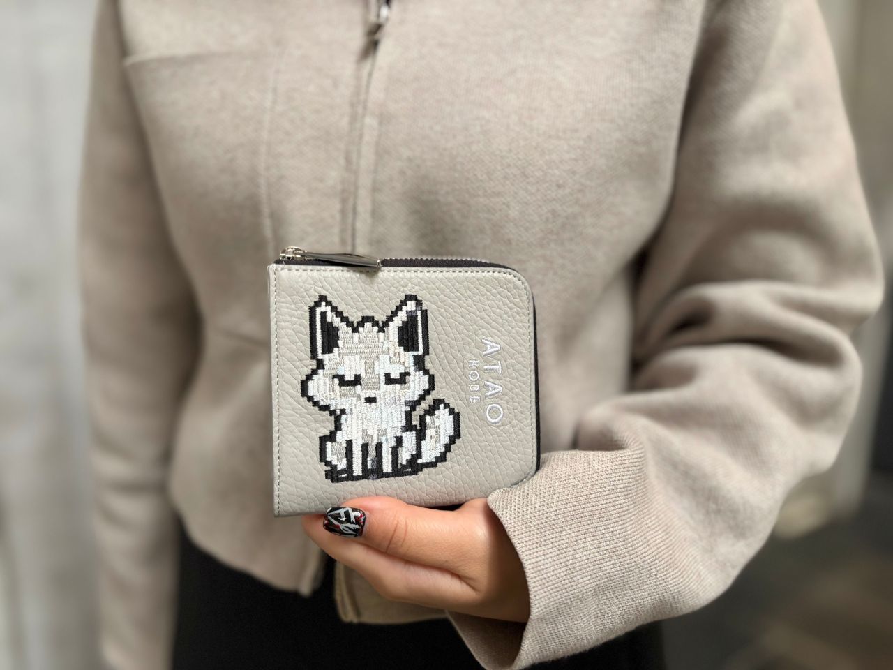 そんな縁起の良い白狐を、キャンバスプリントでバッグに、技術を尽くした「レザーへの刺繍」でミニ財布とスマホショルダーに仕上げた「白狐シリーズ」。