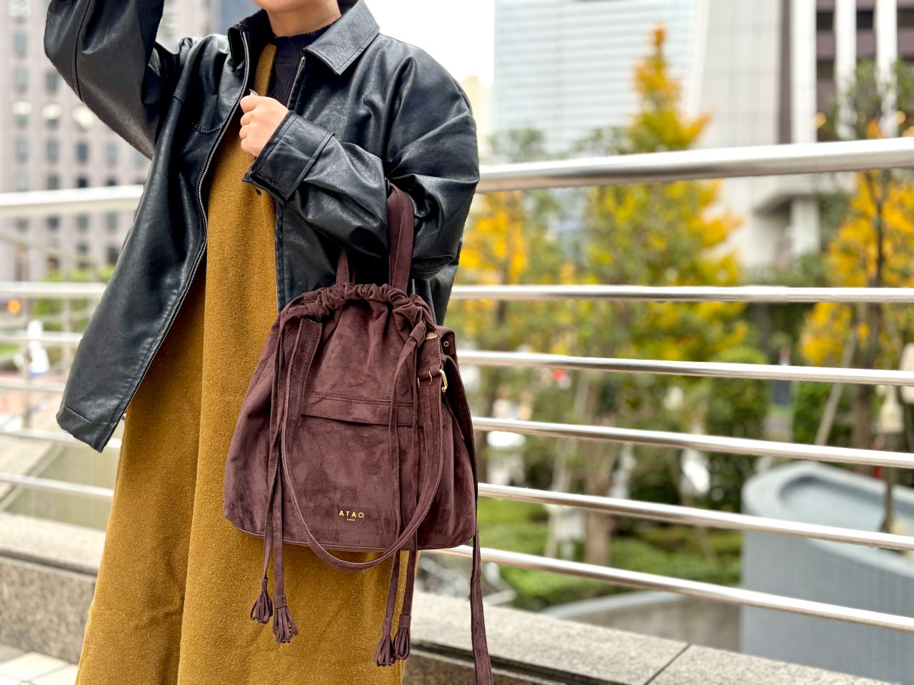 「もともとラフなデザインのバッグが好きなのと、巾着型のバッグも好きなので、一目見た瞬間に購入を決めました!(笑)実際に合わせてみると普段のスタイリングにも合わせやすく、持っているだけでおしゃれに決まる気がします!上質感がありながらお手頃プライスなのも決め手の一つです♪」