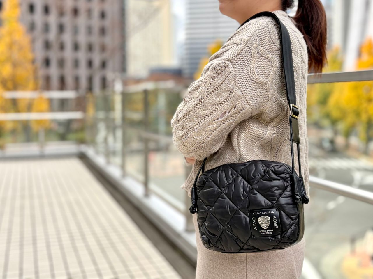 「同素材のリュック“トータス”も愛用しているのですが、この素材はとにかく軽いので一日中身に着けていても肩がこらなくて本当に助かっています!」
