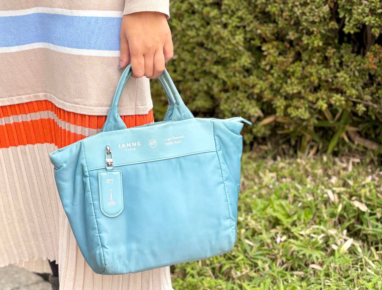 「ナイロン素材なので軽くて、撥水素材で雨の日でも使えて、ポケットが多くて整理整頓もしやすくて最高です!コーデのワンポイントになってくれる発色の良さと、カジュアルなパンツスタイルに合わせるだけでエレガントさを足してくれる上品なデザインも気に入っています☆」