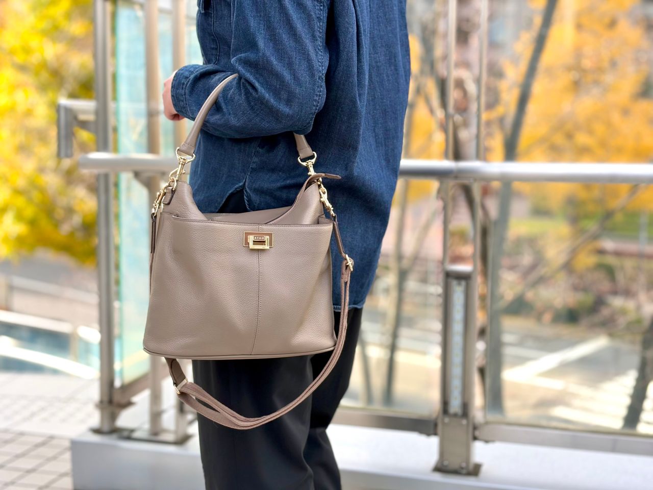 「通勤中は手持ちスタイルで、子供の送り迎えの時には斜めがけにして使っています♬上品な雰囲気漂う本革バッグですが、カジュアルな服装にもマッチしてくれるところがお気に入りです☆」