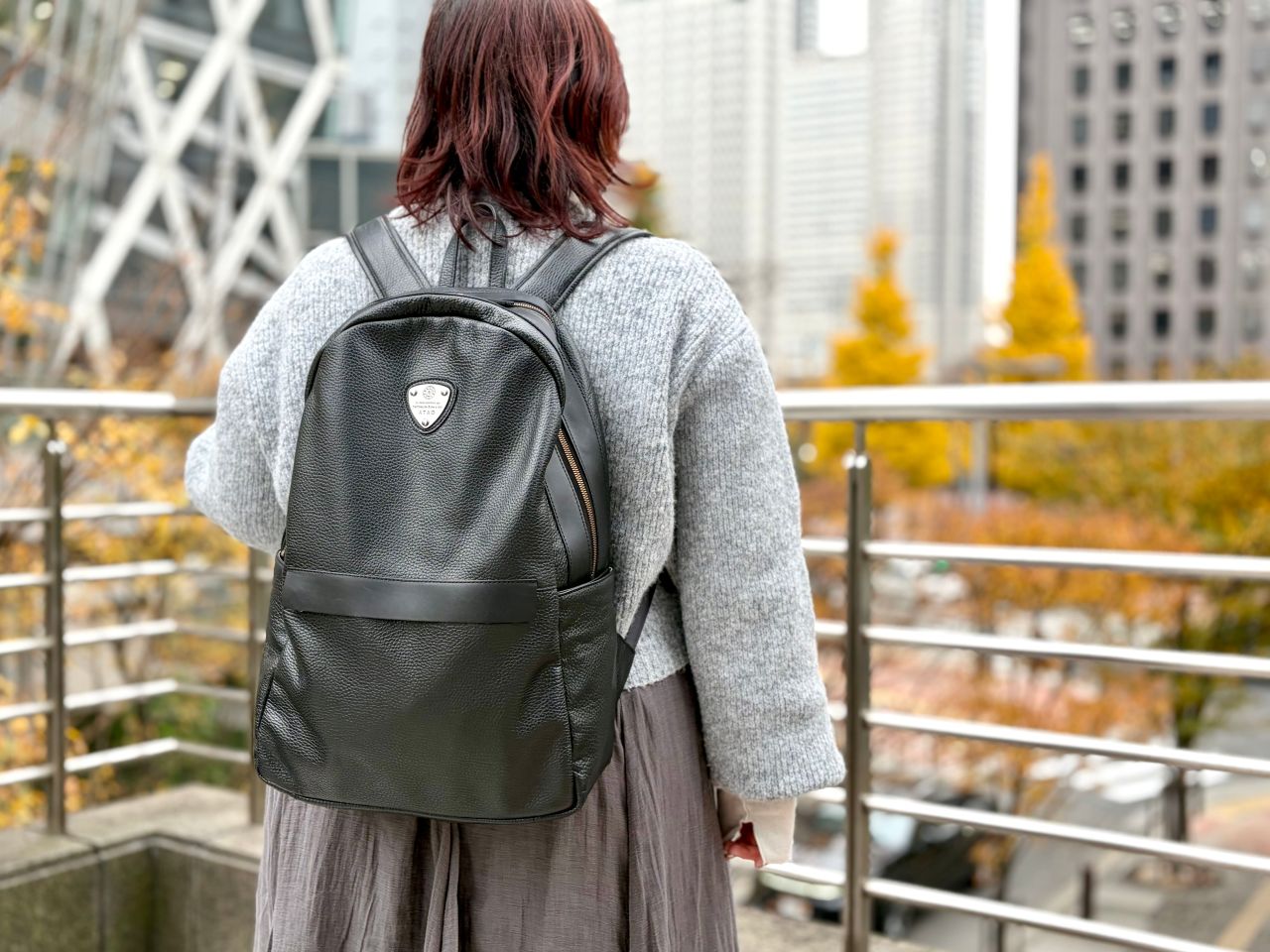 「レザーもエンブレムもブラックで統一感のあるデザインがかっこよくて前から気になっていたのですが、他のスタッフが使っているのを見て、やっぱりかっこいいな~と思い購入しました!たっぷり入れられる大きめのサイズ感も決め手の1つです♪」