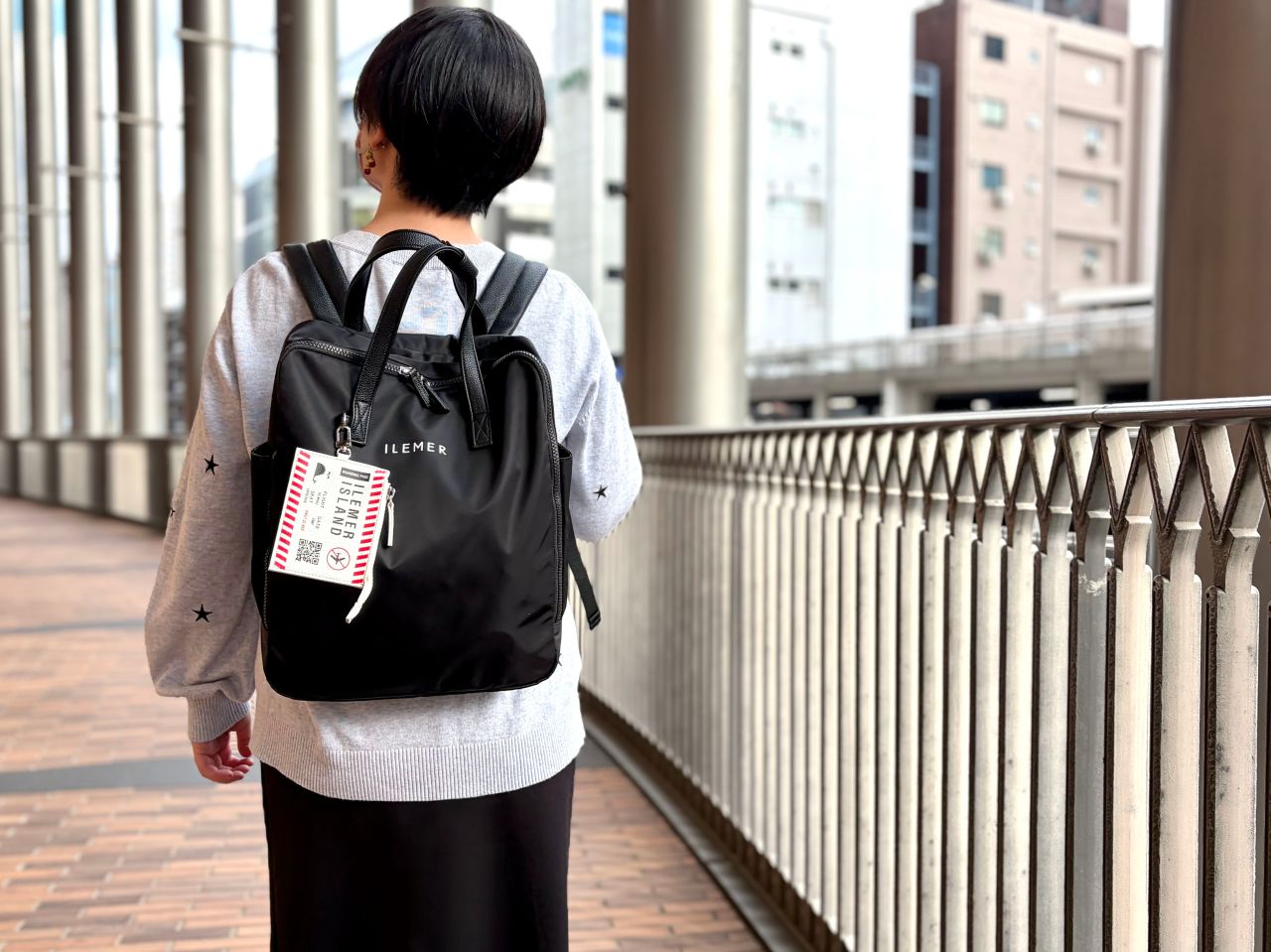 「大きく開くファスナーポケットが旅行に便利そう!と一目惚れ♡旅行で使いたいので、天候を気にせず使える“撥水ナイロン”が使われているところにも惹かれました。汗っかきなのでショルダーベルトと背中の部分がメッシュ素材で通気性が良いのも決め手の1つです♩」