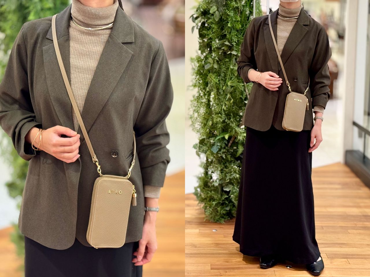 ATAO大好きスタッフさぁ はいろんなバッグを愛用&素敵コーデをしていますが、お財布ポシェットはこちらを愛用中!!ジャケットとの組み合わせも素敵です。