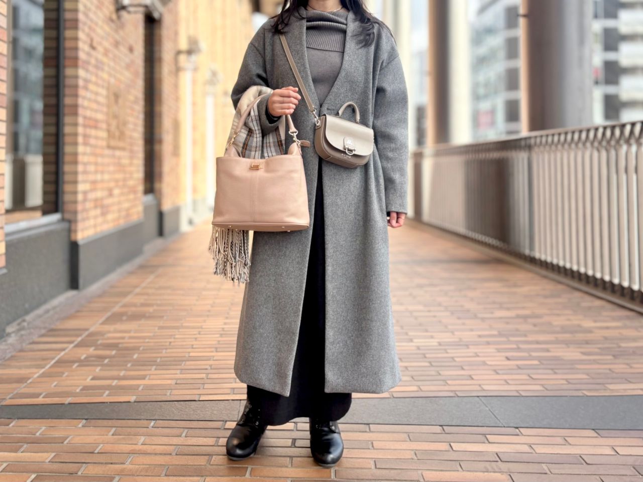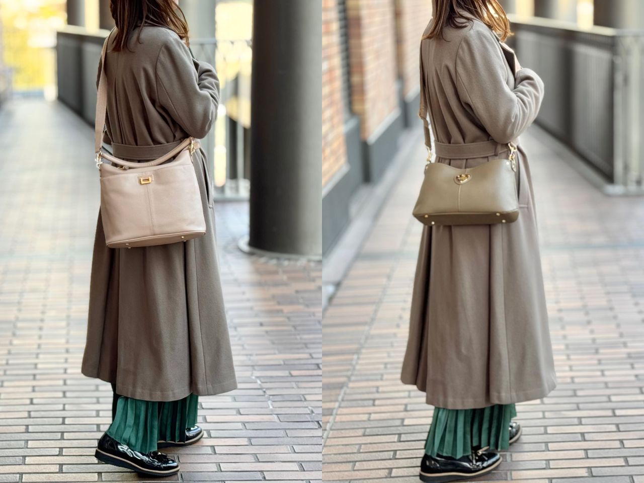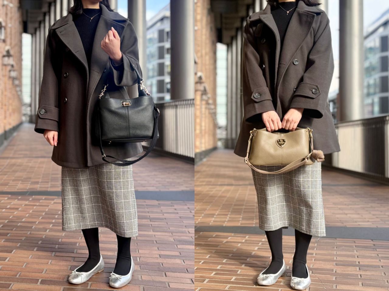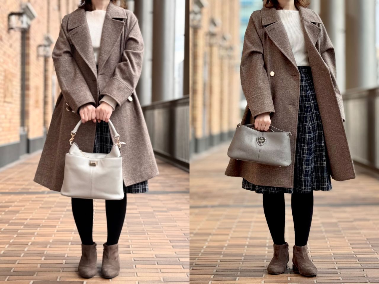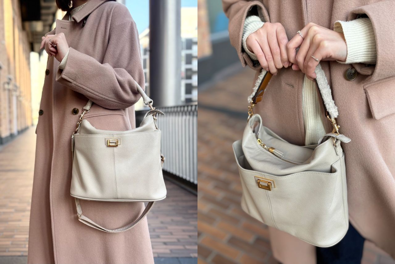 それでは、スタッフの冬コーデに合わせてバッグが変わるとどんなふうに雰囲気が変わるのか、、、皆さまのお好みはどちらか楽しみながらご覧くださいませ^^♪