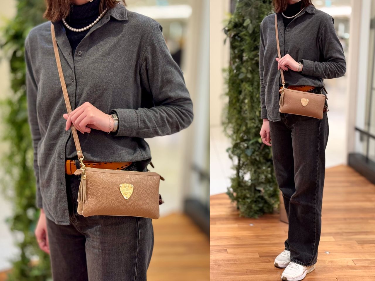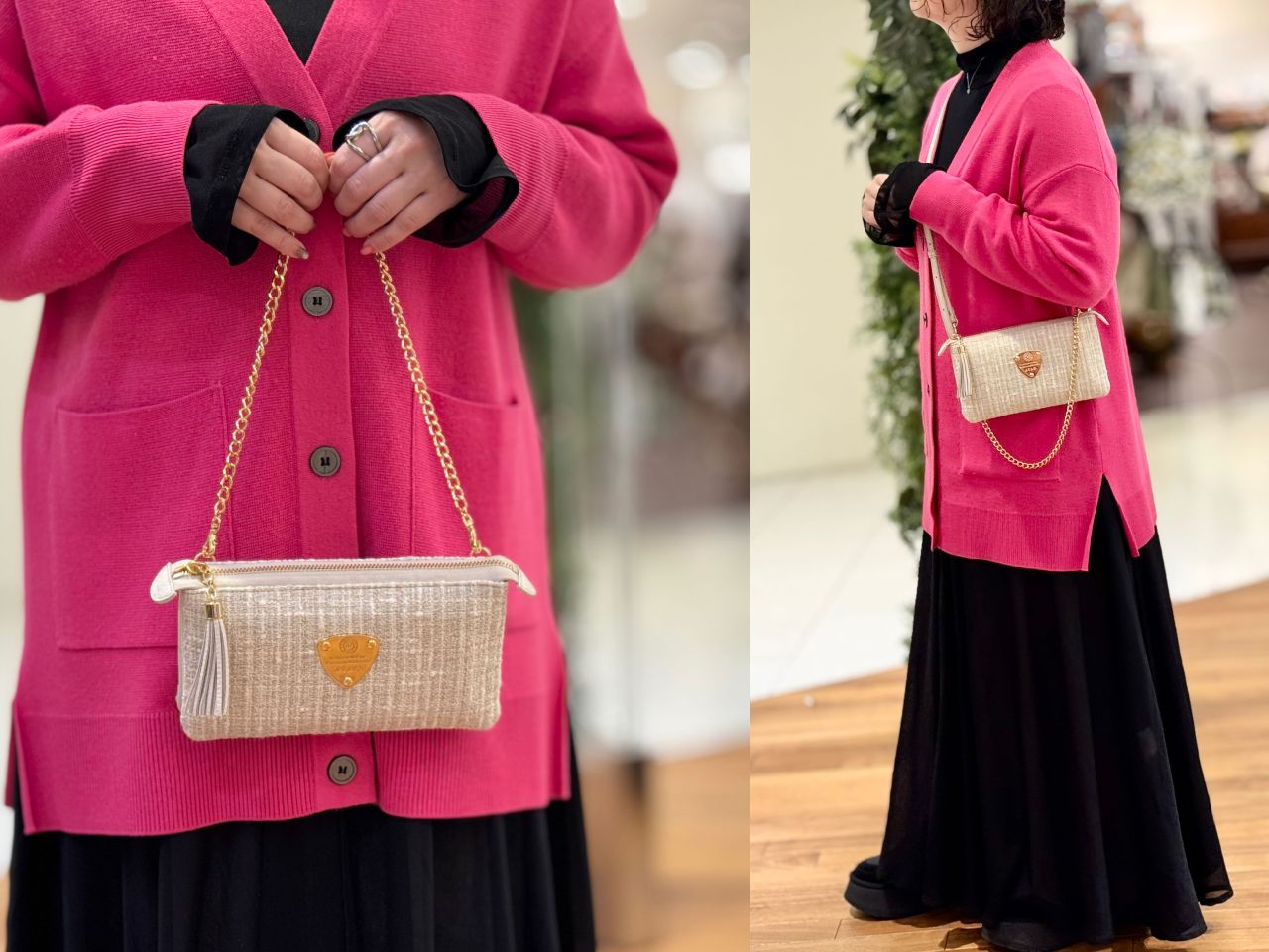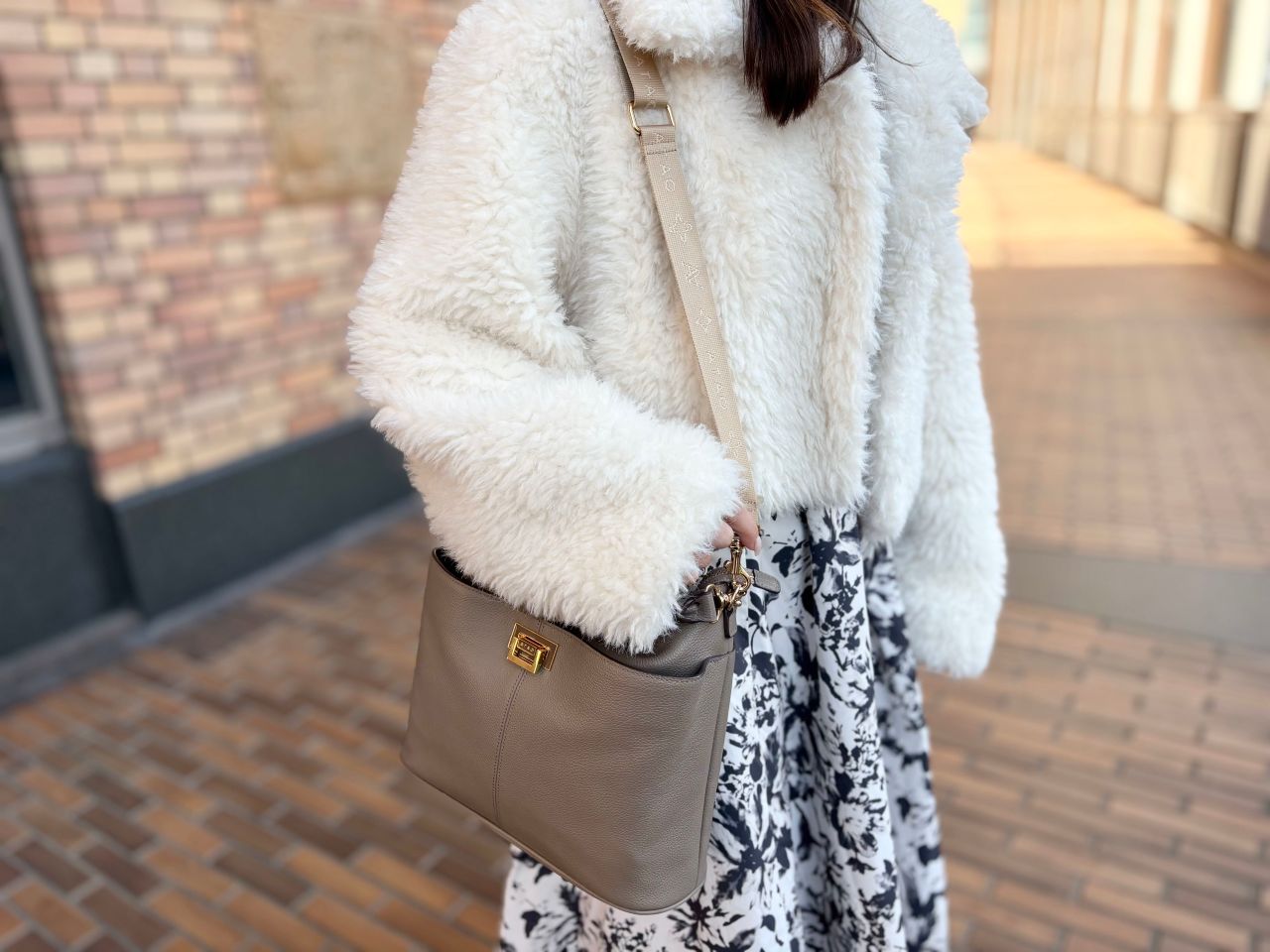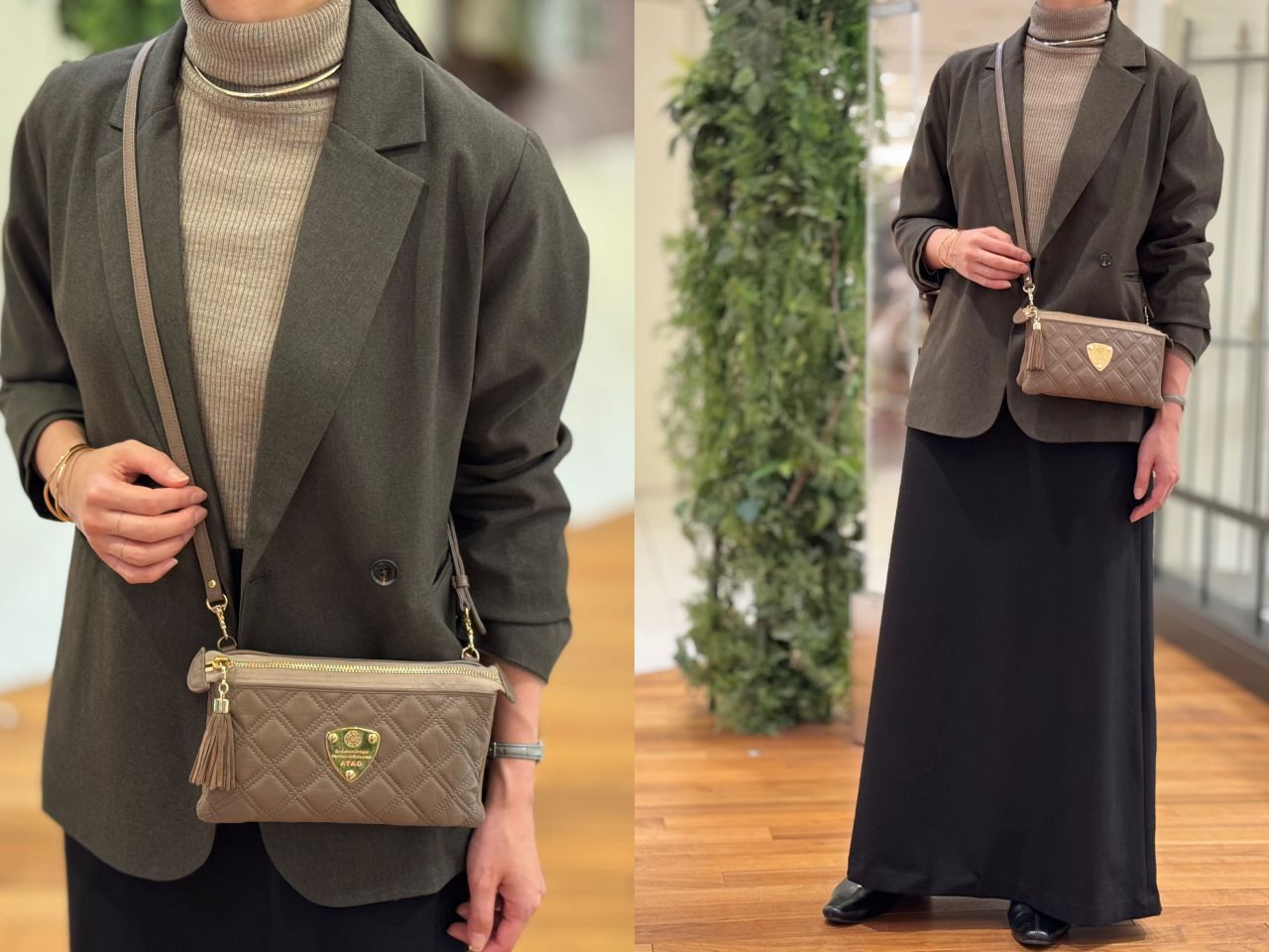 それでは、スタッフの冬コーデに合わせてバッグが変わるとどんなふうに雰囲気が変わるのか、、、皆さまのお好みはどちらか楽しみながらご覧くださいませ^^♪