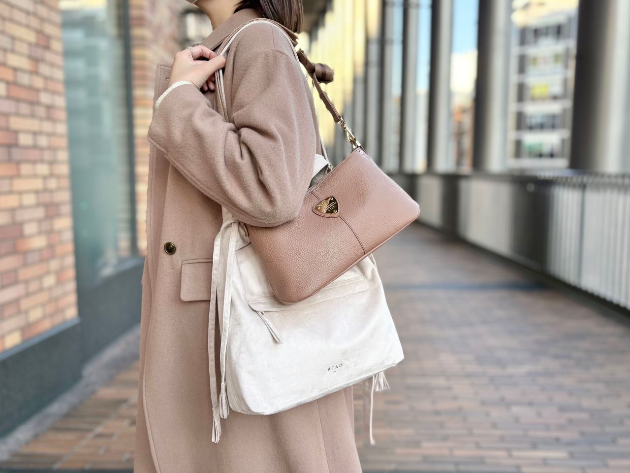 最近寒い日が続いていますね…外に出るのは億劫ですが、寒くてもバッグやお洋服のコーデは楽しみたい!!本日は、アタオランド店スタッフがATAOの大人気バッグchivy+(チヴィプラス)とウィークエンド、お財布ポシェットを中心にバッグやお洋服をいろいろ組み合わせてみました!バッグを変えると同じお洋服でも印象が変わるので見比べてみてくださいね^^♪ぜひ最後までご覧くださいませ★