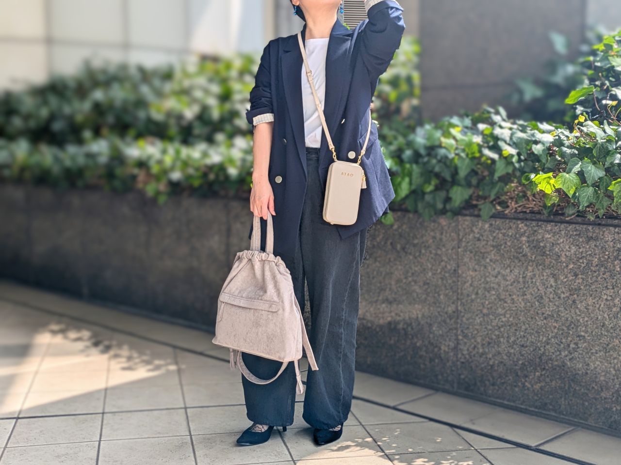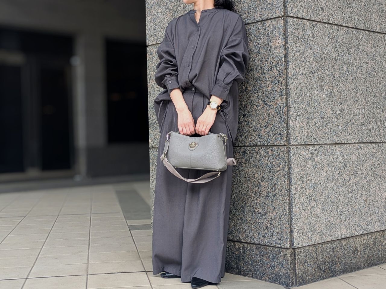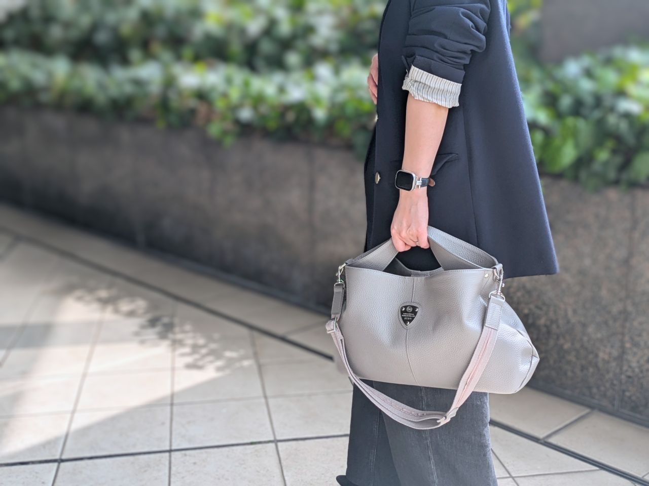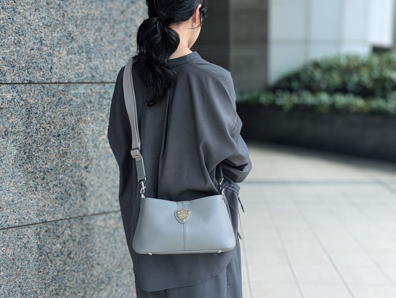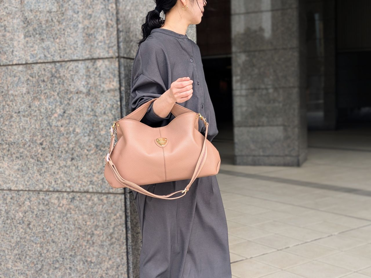 手持ちでもななめ掛けでも、こなれ感がありすっきりみえるシルエットながら見た目以上の大容量。