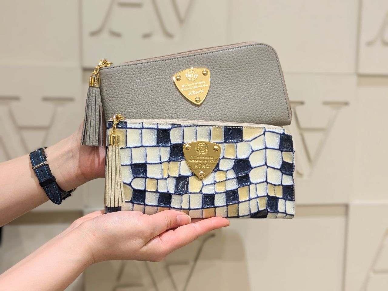 ↑ “ATAO”の切り文字エンブレム側がお財布の役割
