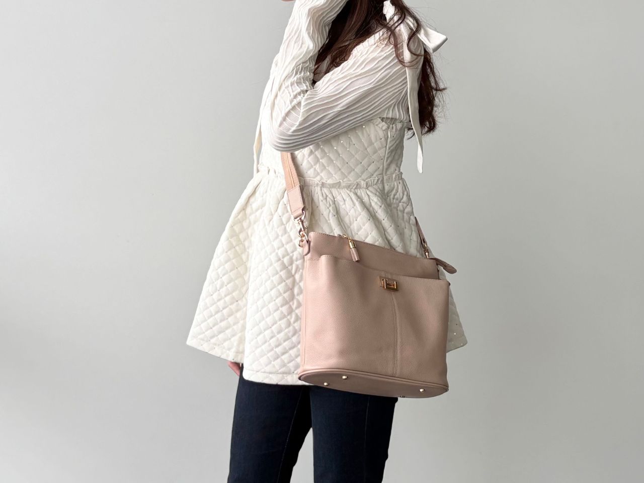その日のシーンや気分、バッグの重さに合わせて持ち方を変えられるのが魅力です。