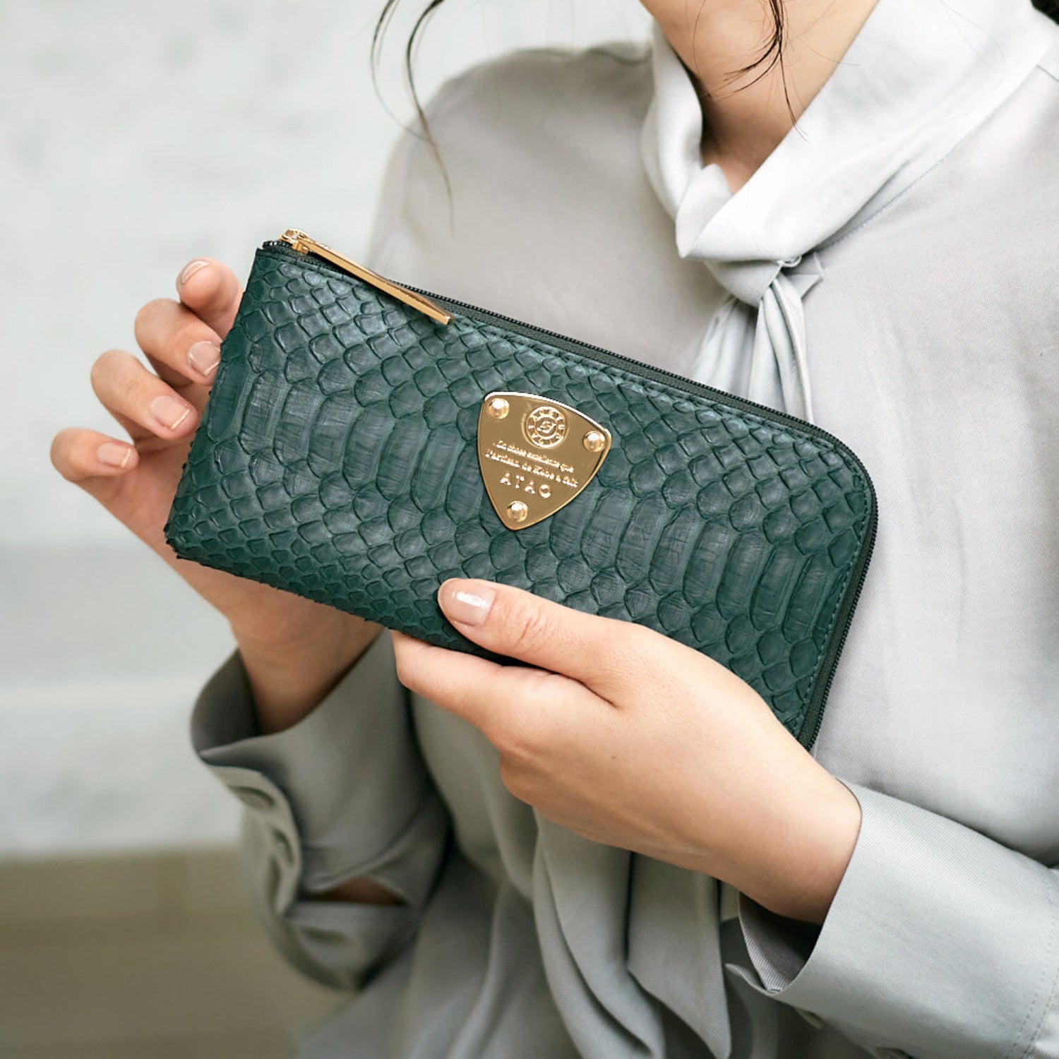 金運招来効果のあるパイソンを使用した「limo(リモ)パイソン/ATAO(アタオ)L字長財布」はやさしい色合いが特徴のお財布です。