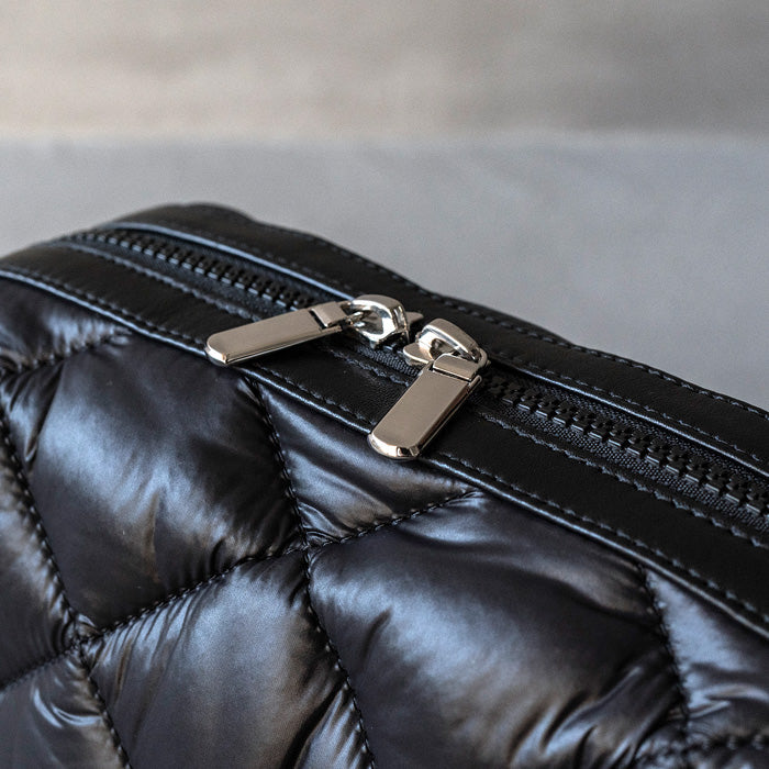 数年かけて開発されたATAOオリジナルのパファー素材キルティングは、ふかふかとした心地よい手触りと撥水性を兼ね備えています。シンプルながら、カジュアルになりすぎない絶妙なデザインバランスが、大人の装いにすんなりと溶け込みます。上質なナイロン素材だから上品な雰囲気がしっかり保たれていて、きれいめコーデとの相性も抜群。サイズ感も絶妙で、スマートフォン、長財布、ハンカチ、鍵といった必需品がしっかり収まります。