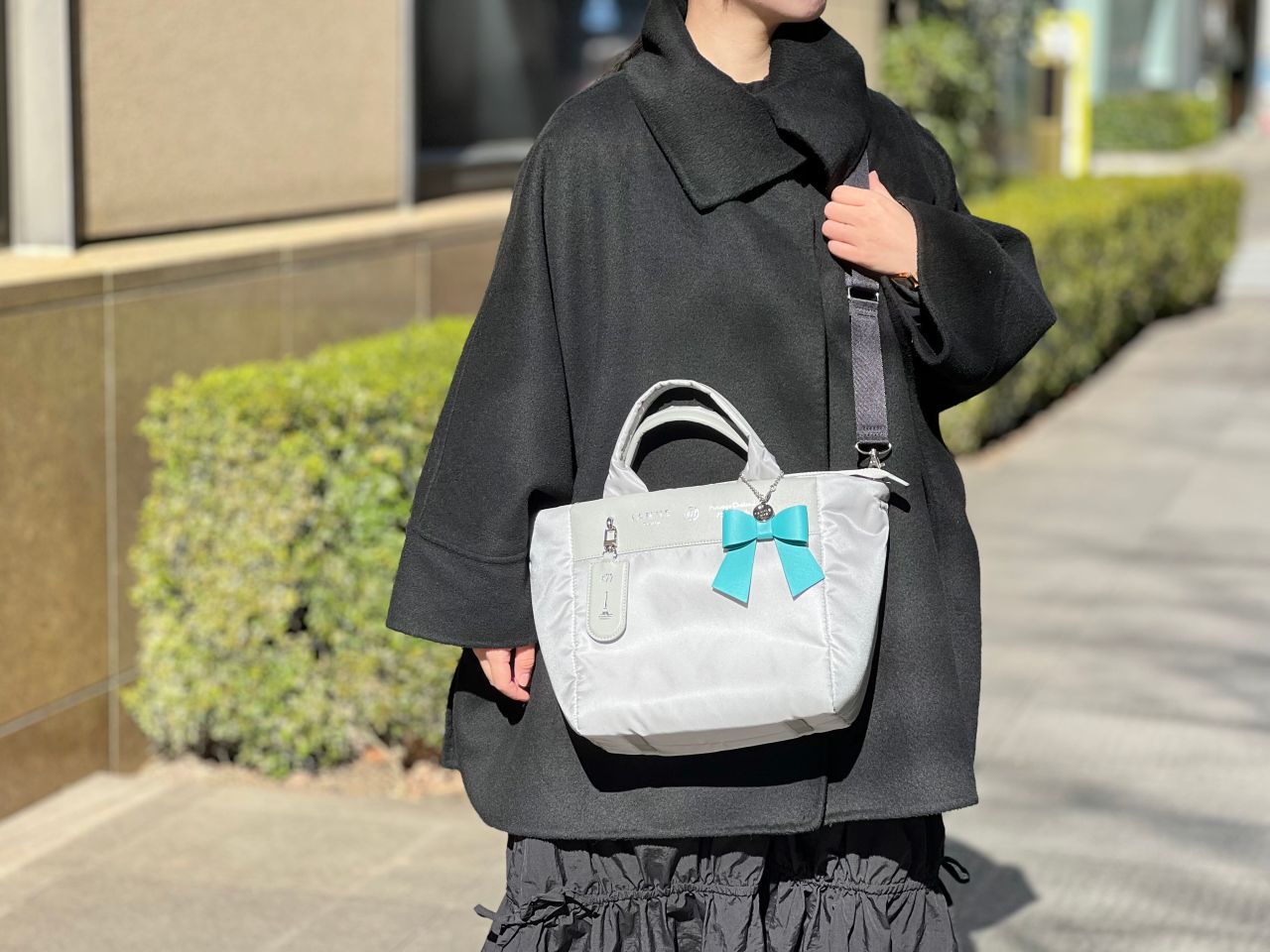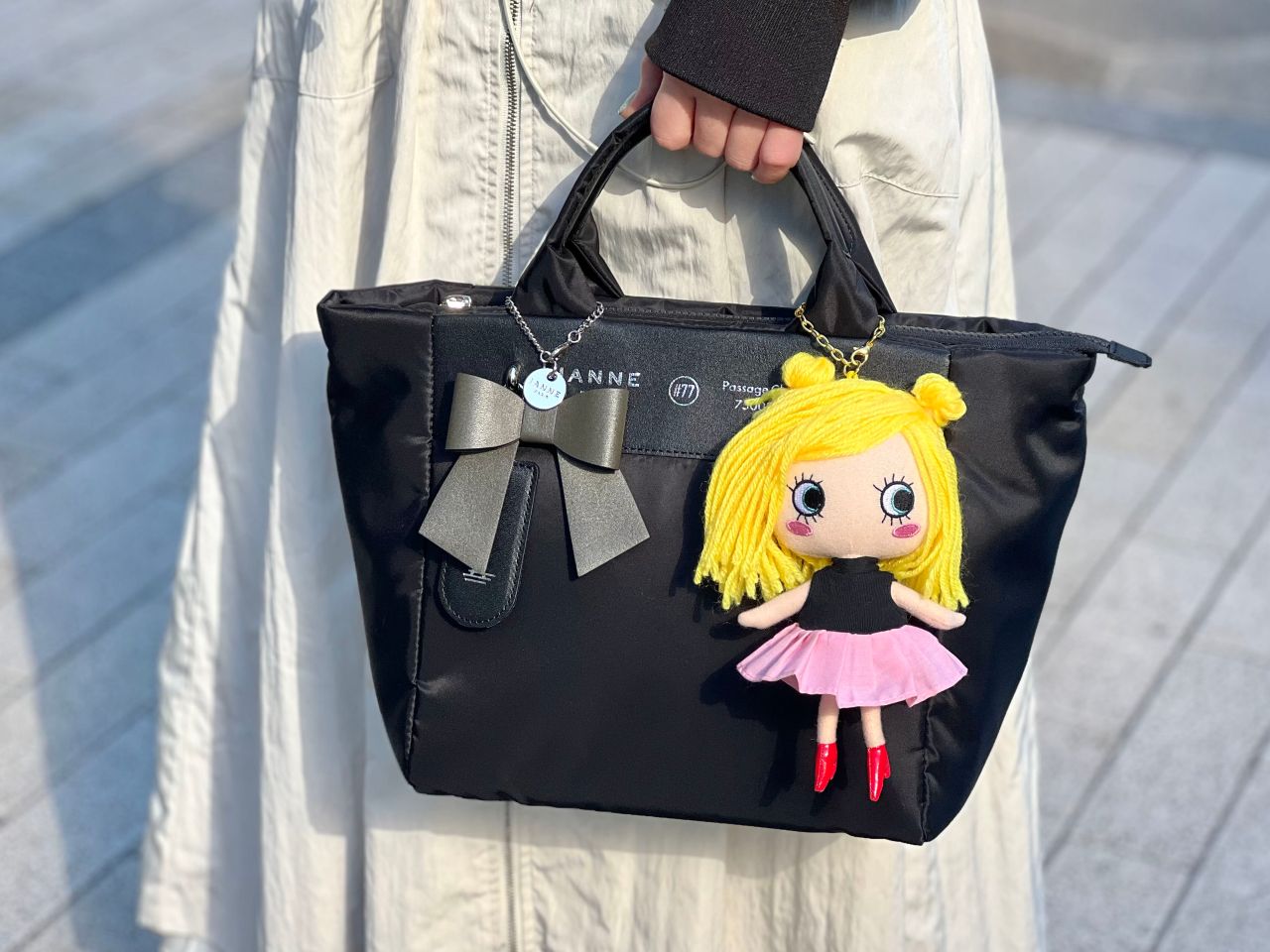 斜め掛けで身軽スタイル。rubanがアクセントで、抜け感のある雰囲気にまとまっていますよね!リボンチャームを主役にすることで、遊び心を感じさせるコーデにも◎