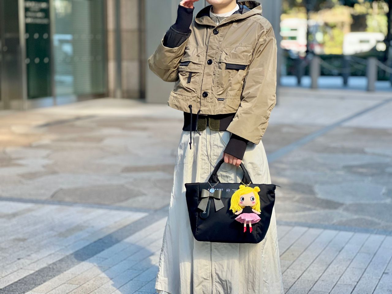 軽やかなスカートスタイルに「ブラック」のバッグをあわせる事で、全体が引き締まった印象に。最近流行りのチャームとも素敵にあわせていただけます★