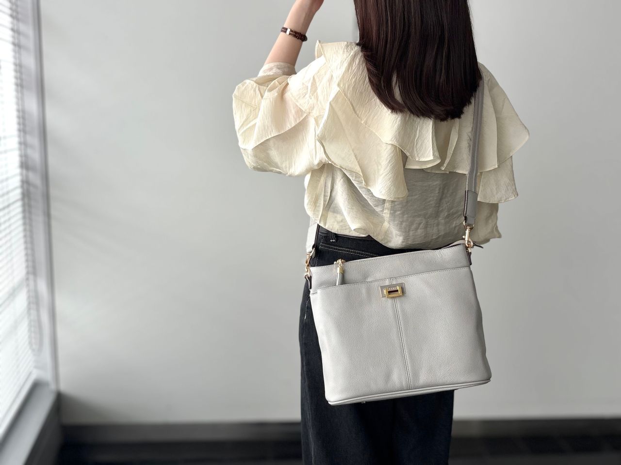 移動が多い日はショルダーで楽に、少しきちんとした場面では手持ちで。シーンに合わせて持ち方を変えられるので、出番が増えます。更に、レザーでありながら軽やかに持てる点も、