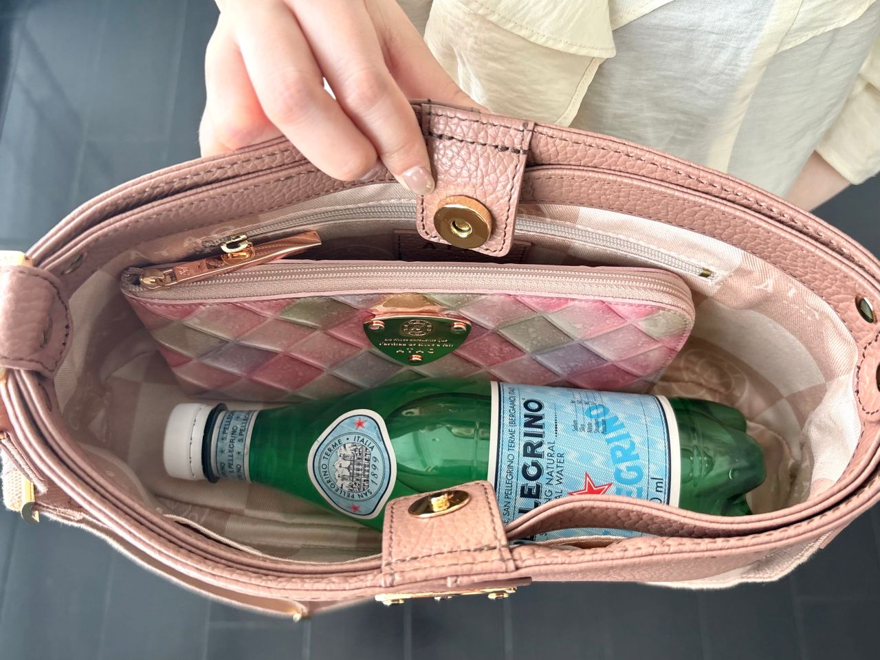 ペットボトルや長財布が入るサイズ感で、小さめバッグ特有の“
