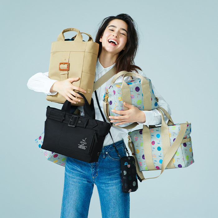 ATAOのブランドコンセプト”トレンチコートに合うカバン”。そのキーワードとなる「トレンチコート」の要素を取り込んだATAOゴルフ『トレンチコートライン』。 トレンチコートは元来イギリスにて寒さや雨を凌ぐためのミリタリーコートとして開発されました。トレンチのシンボリックなガンフラップやウエストベルト、撥水性のギャバ素材等、トレンチコートならではの要素を随所に取り入れた、ATAOのDNAを感じさせる新シリーズです。