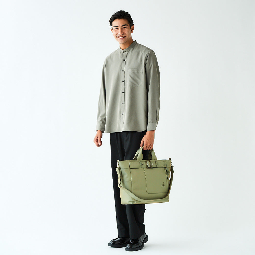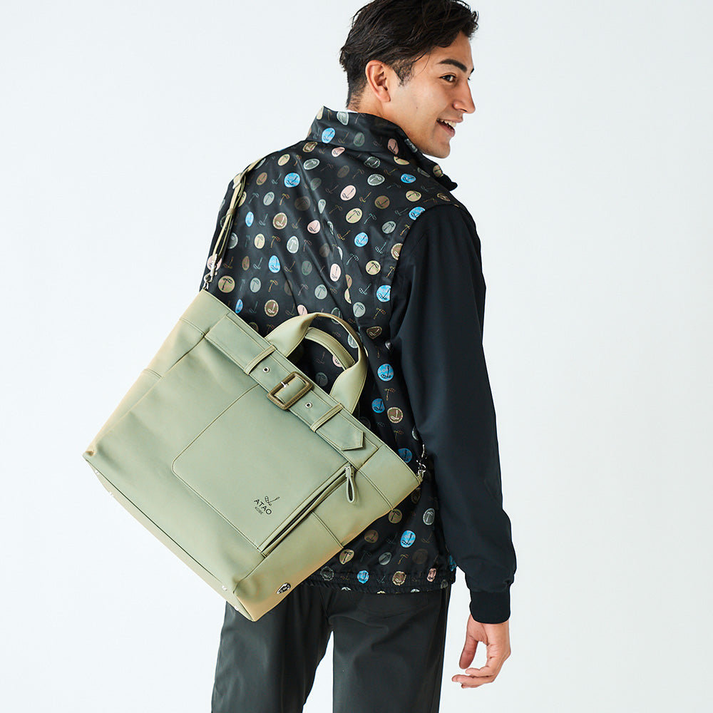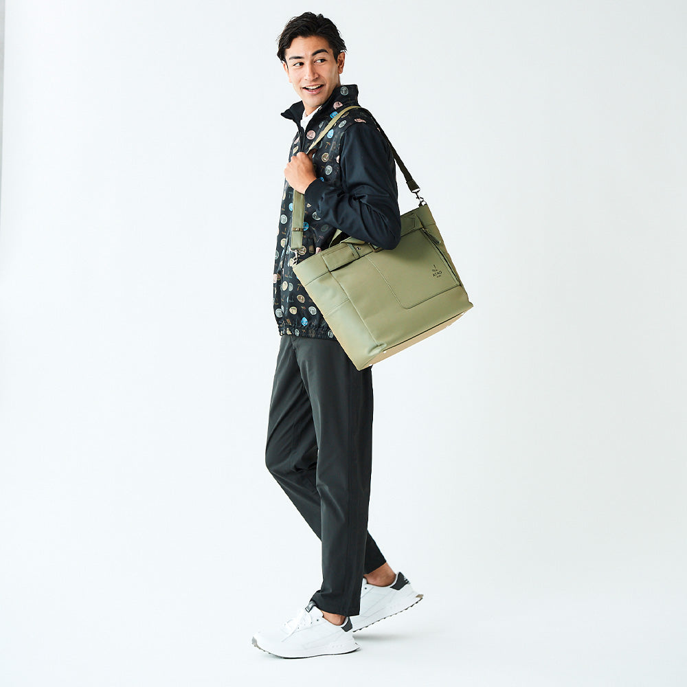 ベーシックカラーがタウンユースにも最適なJAPANクオリティの「トレンチ ロッカートート」。レザーがポイントのフロントベルトに加え、ガンフラップモチーフのポケットには、神戸ファッションとイギリスの伝統を調和したコレクションであることを意味するメッセージが添えられています。ドリンクホルダーやキーパーツの便利なギミックに加え、高さにゆとりを持たせた大容量のサイズ感は、ゴルフバッグの他、ショートステイのご旅行にもオススメ。ゴルフをする人のみならず日常シーンに取り入れていただきたい撥水トートバッグです。